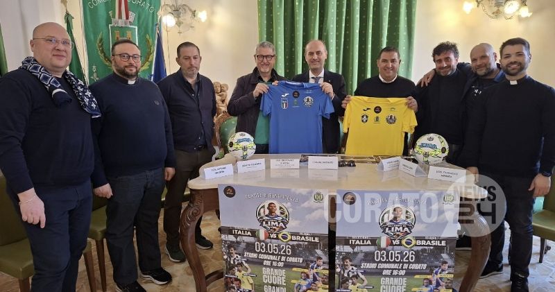 In data 8 aprile 2026, alle ore 10.00, presso la Sala Verde del comune di Corato, si è tenuta la conferenza stampa di presentazione della “Partita benefica ITALIA vs BRASILE – vecchie glorie” organizzata dall’AZ Village ASD in collaborazione con “Gli Amici di Lima”.